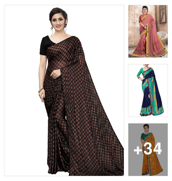 women black plain saree with blouse