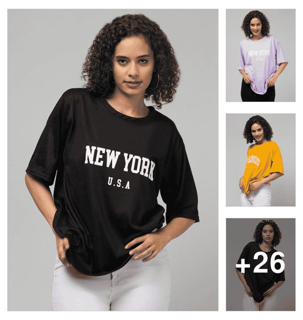 globus women black typography printed drop shoulder boxy fit t-shirt