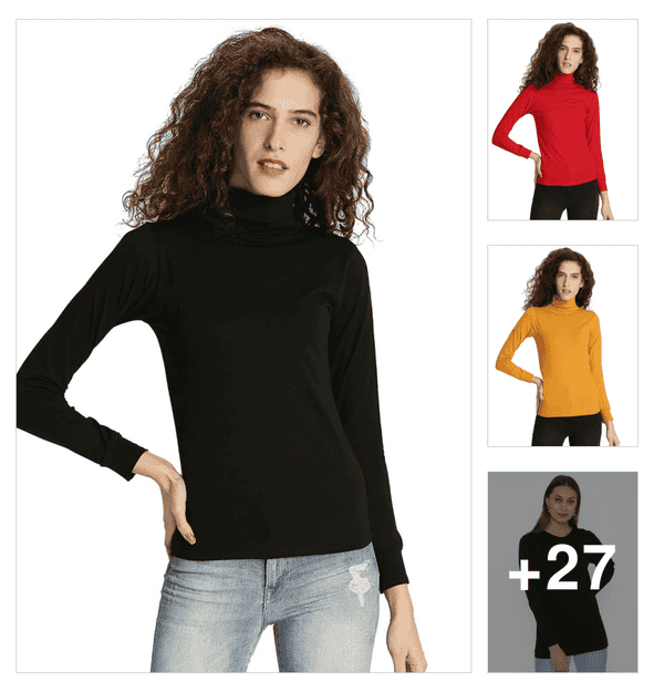 black solid high neck cotton t-shirt