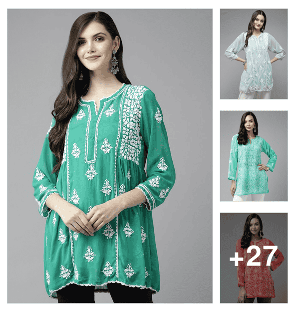 women three quarter sleeve straight chikankari kurta