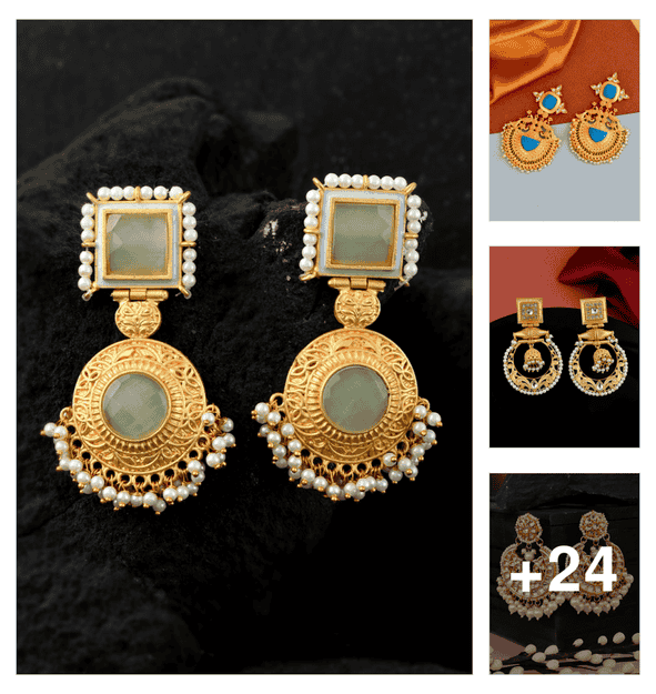 women stone studded drop earring