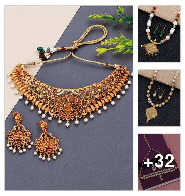 gold metal short necklace