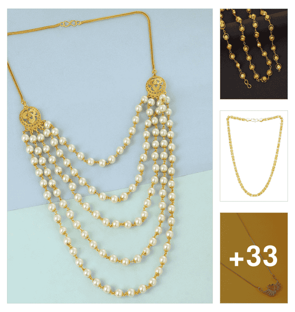 designer gold plated pearl stylish chain