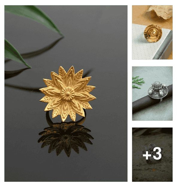 women pack of 4 gold brass finger ring