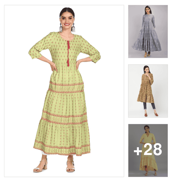 women printed three quarter sleeve anarkali kurta