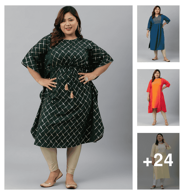 women plus size three quarter sleeve straight kurta