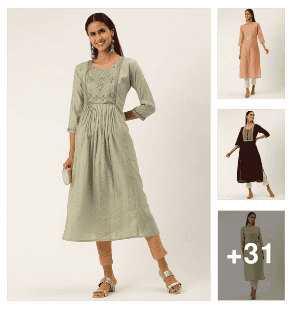 women e tmbroideredhree quarter sleeve kurta
