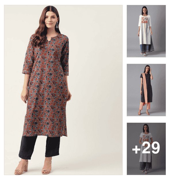 women three quarter sleeve straight kurta