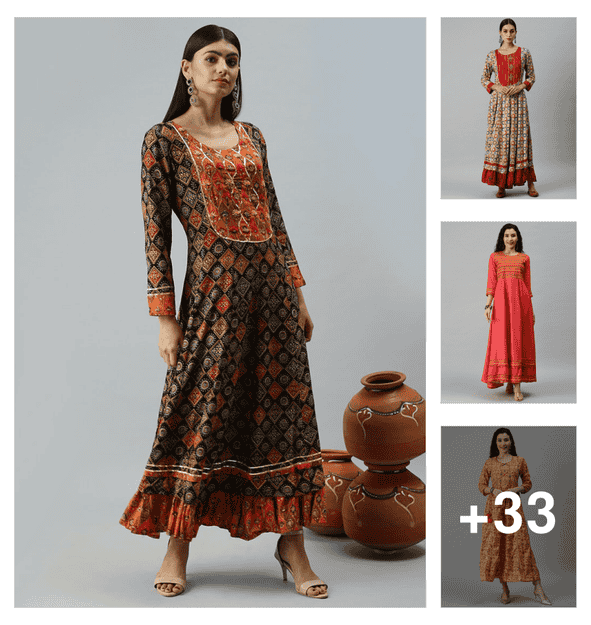 women floral printed long sleeve anarkali kurta