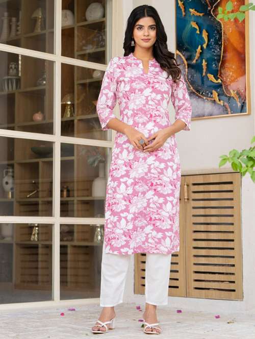 women printed three quarter sleeve straight kurta