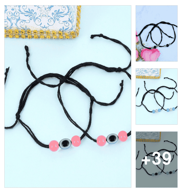 gold plated charm bead black thread anklet