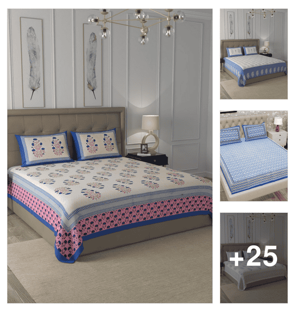 printed double bedsheet with 2 pillow cover