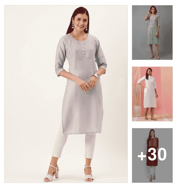 women three quarter sleeve straight kurta