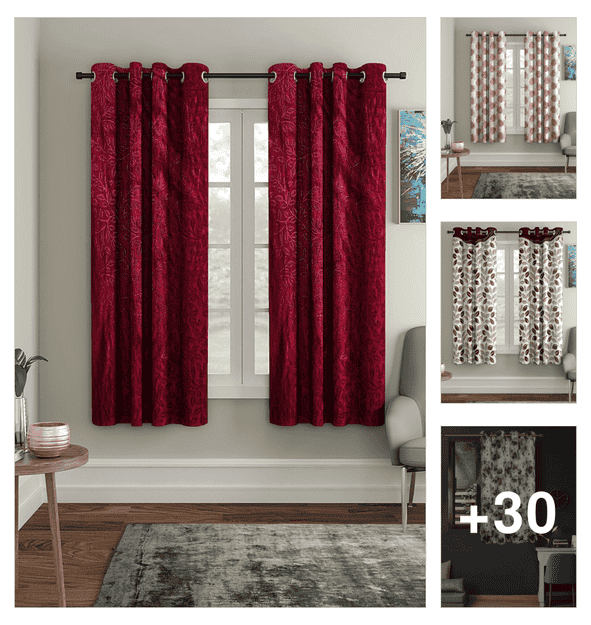 home sizzler 2 pieces sunflower panel eyelet polyester door curtains - 7 feet, maroon