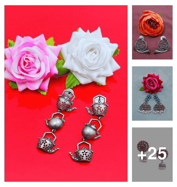 women silver plated oxidized chandelier earrings