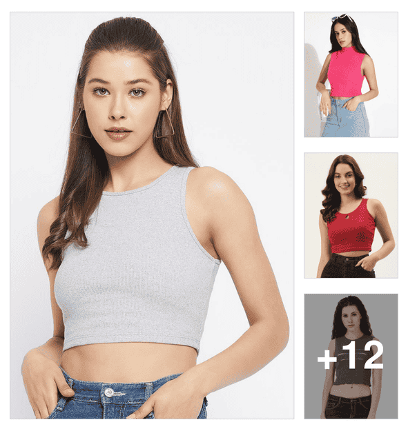 women solid sleeveless crop top