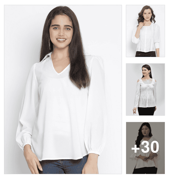 women's white round neck top