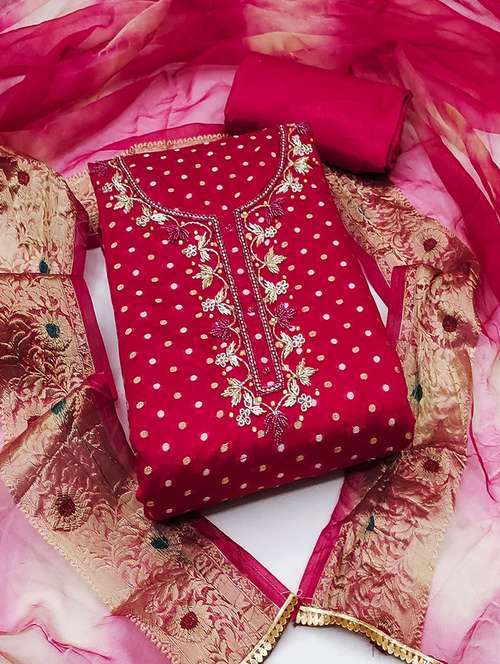 - Look ultra gorgeous in unstitched suits from Lilots and grab these beautiful suits in magenta colour.