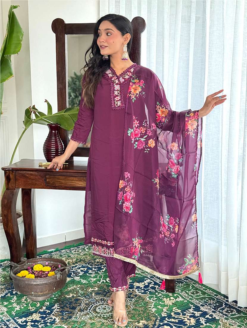 women embroidered kurta pant set with duaptta