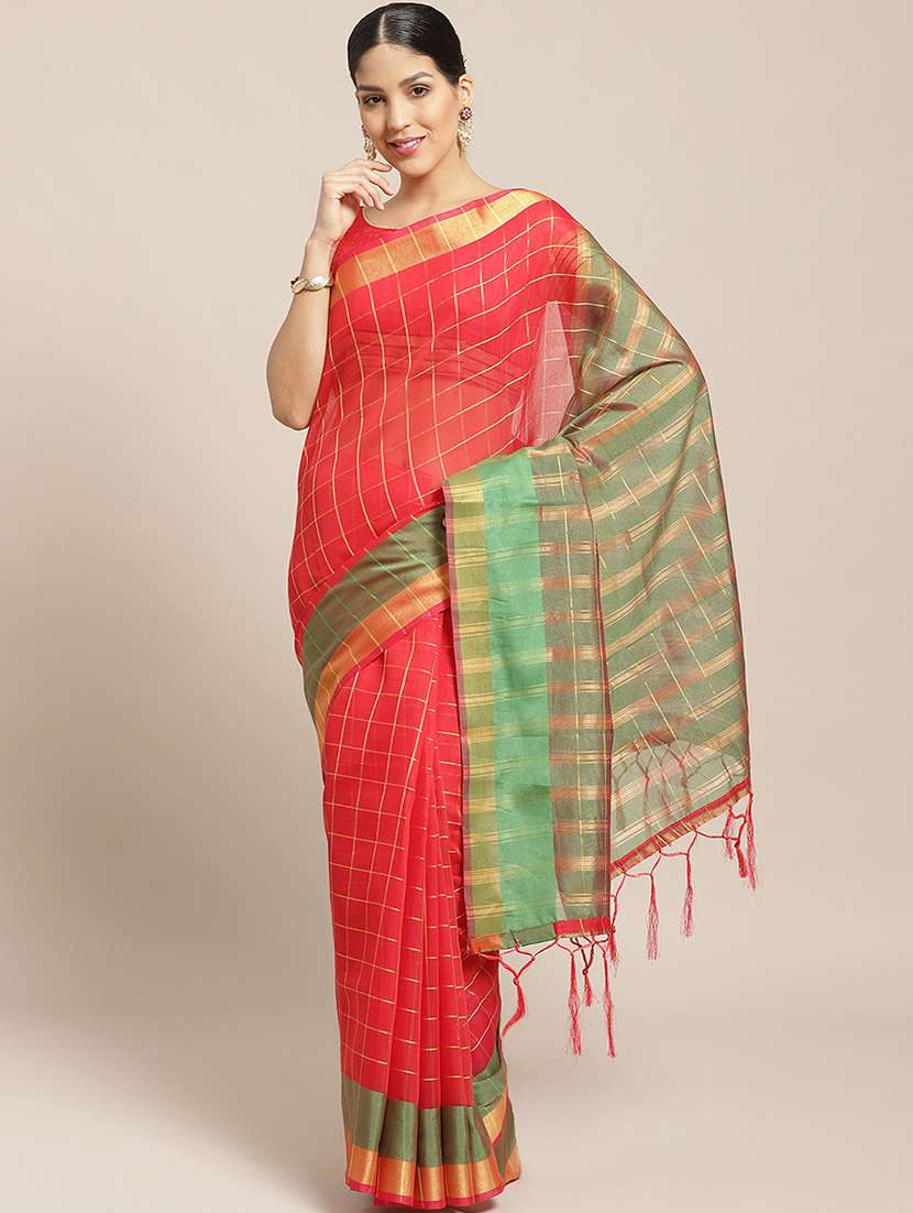 - » checkered woven saree with blouse