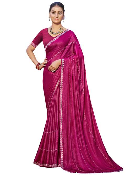 women solid with work embellished saree with blouse