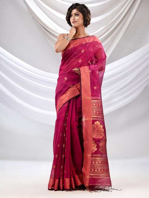 Magenta Cotton Blend Handwoven Saree With Nakshi Pallu