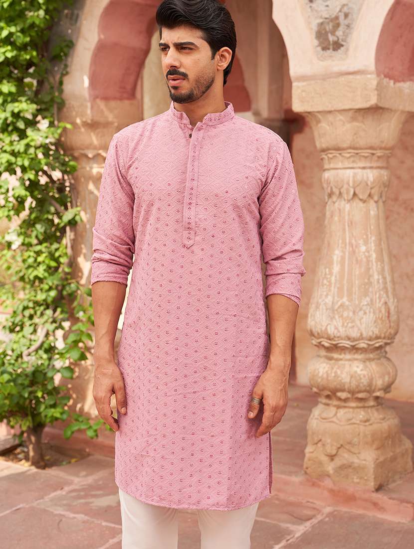 This embroidered kurta. Crafted from a soft and breathable fabric, this kurta showcases intricate thread embroidery for a rich and festive appeal. The mandarin collar, straight hem, and side slits offer a traditional yet tailored look, making it perfect for festive occasions, poojas, and haldi ceremonies.