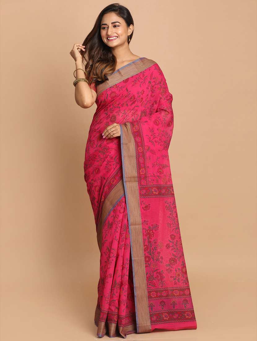 women cotton printed saree with blouse - 21272073 - Very Small Image - 1