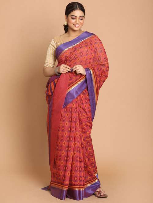 magenta cotton blend gadwal saree with blouse - 21272162 - Very Small Image - 1