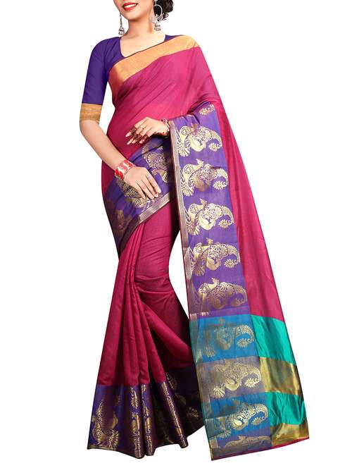 contrast zari conversational border saree with blouse
