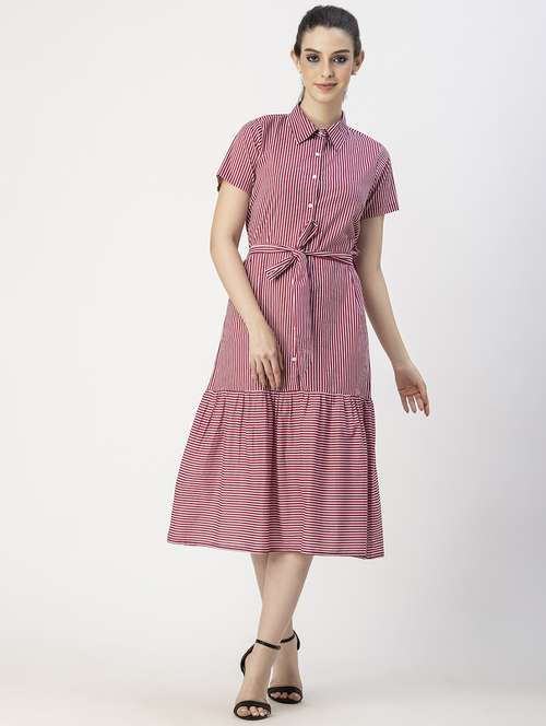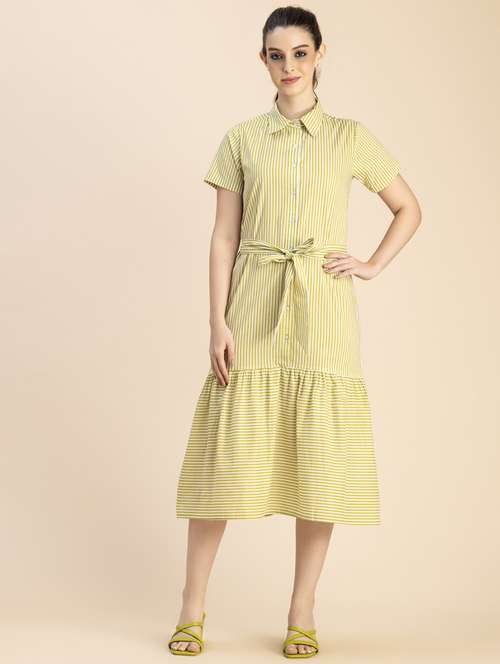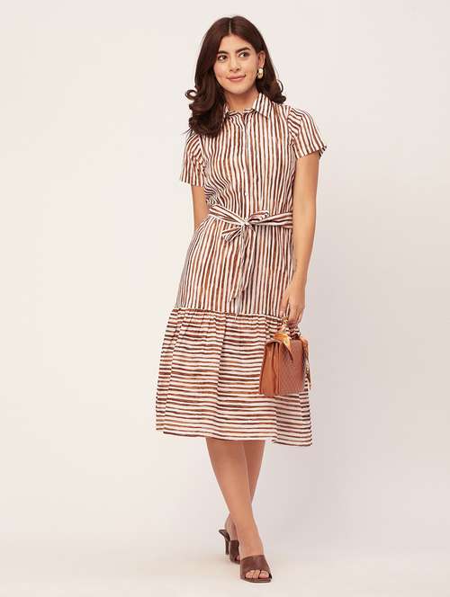 *Includes: This Clothing Consists Of 1 Dress (Any Accessories Worn By The Model Are Not For Sale)*Material: Cotton Cambric *Gsm: 74 *Dress Length: 45 Inches (Approx.)*Model Stats: The Model In The Image Is 178 Cm Tall, And Bust 34\ Inches Is Wearing Size - (S) Small *Features: Short Sleeve, Button Down, Collared, Flared Hem, Knee Length, Lightweight, Fabric Belt And Stripe Printed Pattern.*Care: Machine Wash At 30, Tumble Dry At Low Heat, Iron On Low Temperature *Size Information: Please Refer To Our Size Chart Before Making The Purchase. If Your Size Is In Between Two Sizes, We Recommend That You Choose A Larger Size*Tags: Shirt Dress For Women, Printed Collared Dresses, Button Down Shirts, Short Sleeve Dresses For Women, Printed Knee Length Dress For Women, Casual Dress, Summer Dress, Resort Wear Dresses For Women