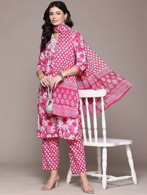 - Find gorgeous sets of ethnic wears in trending designs in pink colors suitable for casual wear of occasions.