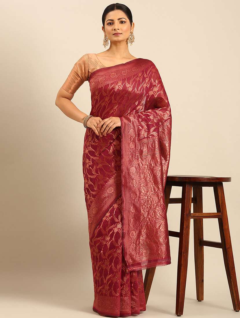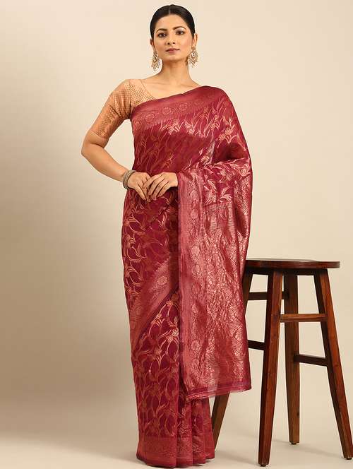 Sangam Prints Magenta Cotton Woven Work Traditional Saree