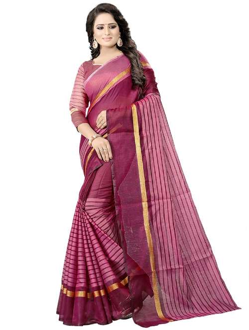 - » women's stripes magenta colored saree with blouse