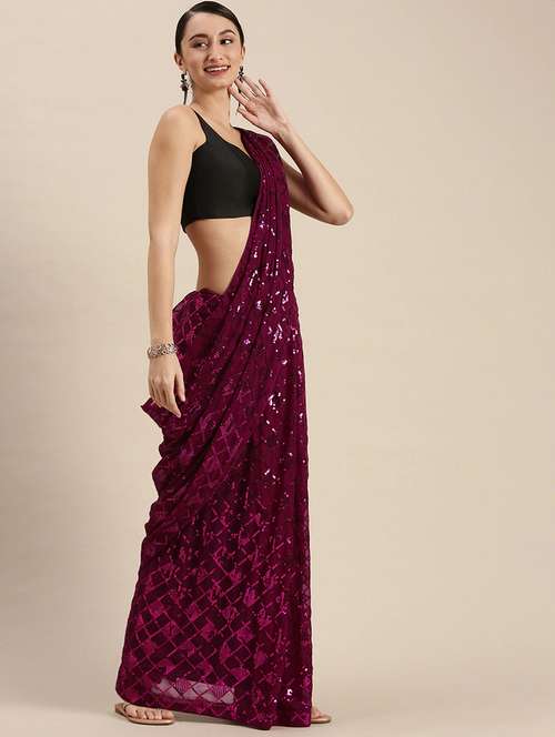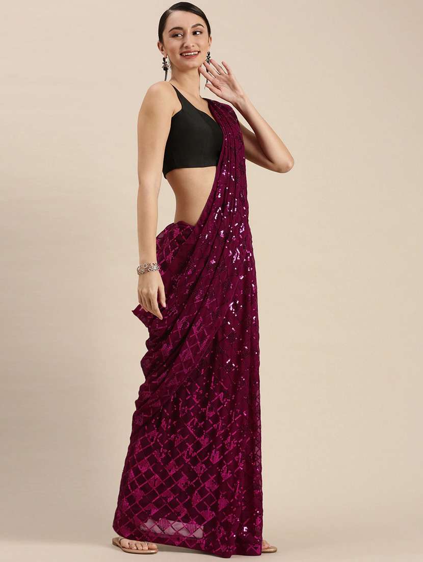 SAREE FABRIC: GEORGETTE SAREE WORK: SEQUINEC EMBRODERY BLOUSE FABRIC: VELVET BLOUSEWORK: SEQUINEC EMBRODERY SAREE LENTH:5.50MTR BLOUSE LENTH:0.80MTR SAREE WIDTH:42” INCH SAREE COLOR: SAME AS PICTURE BLOUSE COLOR: BLACK OCCASION: WEDDINGWEAR TYPE: BOLLYWOOD