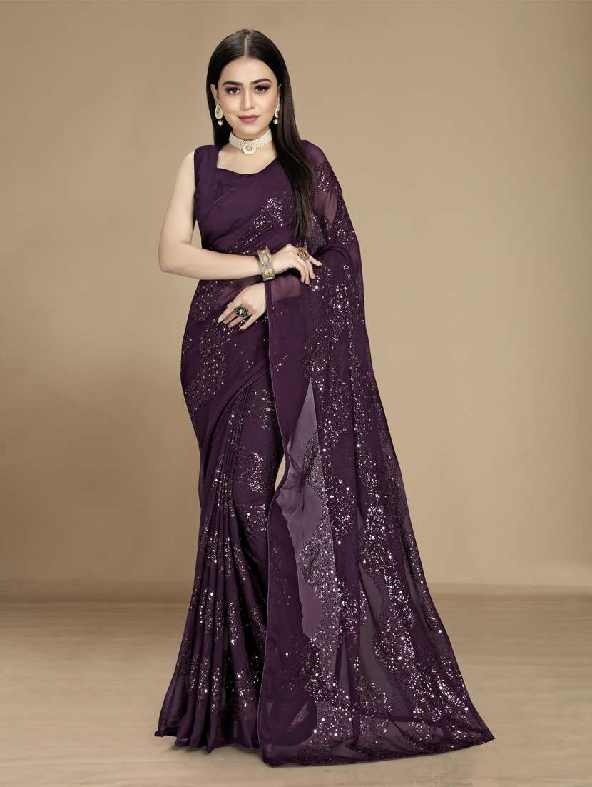 women purple sequin work georgette saree with blouse - 21150296 - Very Small Image - 1