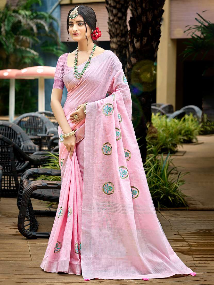 Bunawat brings to you this saree which is made from Linen fabric and is available in attractive colours. The saree is a suitable amalgamation of style with the grace that is required from an ethnic wear. You can wear it to casual occasions as well as make it a part of your festive wear.The saree comes with a 80 cm separate blouse piece which is of the same shade as that of saree. Bunawat It is unstitched and can be altered according to your desired style and fit.Pair this saree with a clutch and a pair of fashion sandals or any casual footwear of your choice for a casual look when dressing up for a party. You can also pair it with a pair of earrings and bangles when adorning this outfit for a festive occasion.Sarees For Women With Blouse. This Is Saree For Women. Saree Length Is 6.30 Mtr Including Blouse Piece. Blouse Is Unstitched Fabric And 0.80 Meter. This Saree Looks Beautiful In Evening Parties.