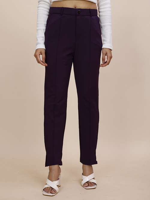 - » women solid mid rise cigarette pants