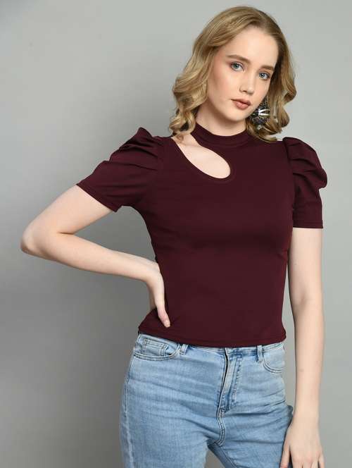 - » women solid puff sleeves crop top