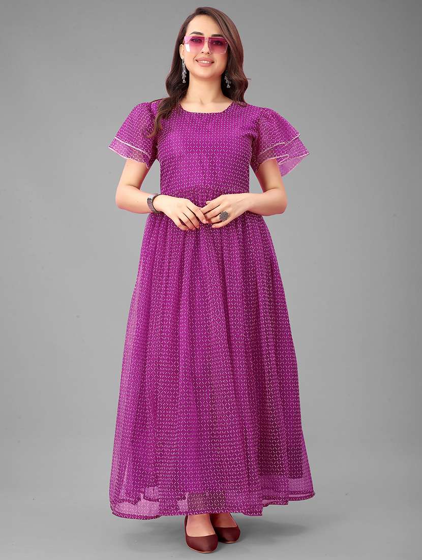 - These attractive gowns come in fit & flare made of net fabrics that can surely garner you lots of compliments when you wear it.