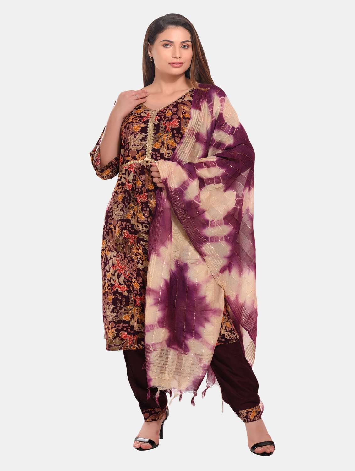 women purple kurta salwar set with dupatta