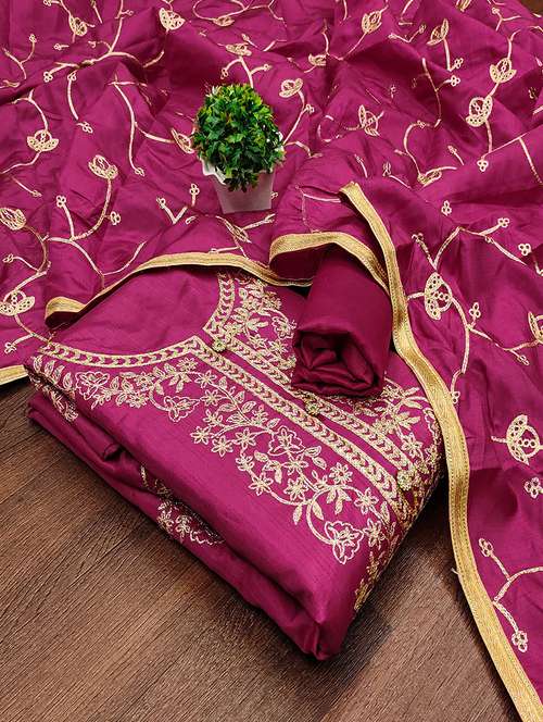 - Look ultra gorgeous in unstitched suits from Lilots and grab these beautiful suits in magenta colour.