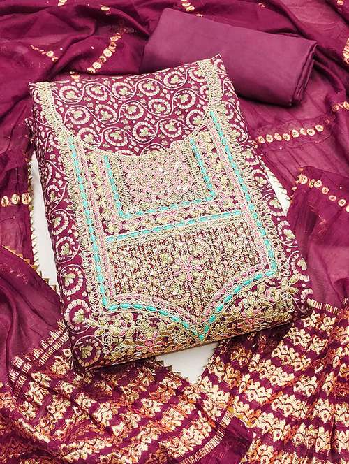 - Look ultra gorgeous in unstitched suits from Peachmode and grab these beautiful suits in magenta colour.