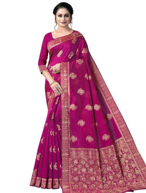 - » women's self design magenta colored saree with blouse