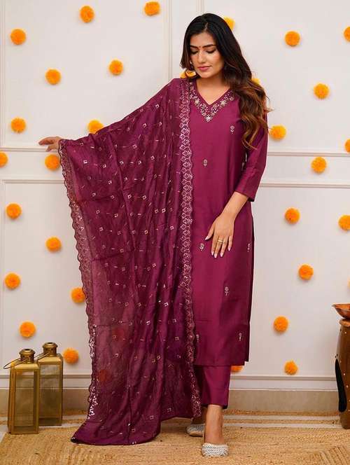 - Find gorgeous sets of ethnic wears in trending designs in magenta colors suitable for festive wear of occasions.