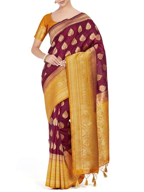 gold zari motif kanjivaram saree with blouse