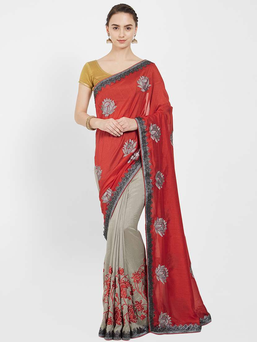 Explore the collection of beautifully designed embroidered Art Silk sarees from Nanda Silk Mills. Each piece is elegantly crafted and will surely add to your wardrobe. Pair this piece with heels or flats for a graceful look.