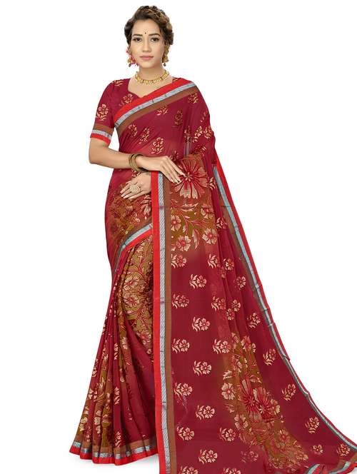 maroon art silk embroidered saree