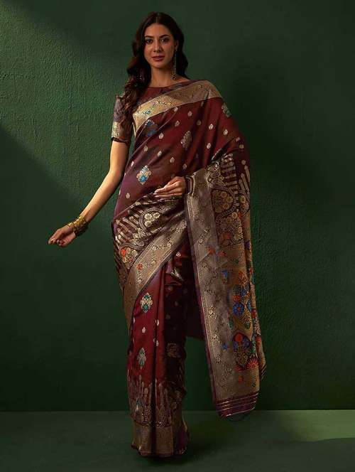 women self design banarasi saree with blouse - 21665663 - Very Small Image - 1