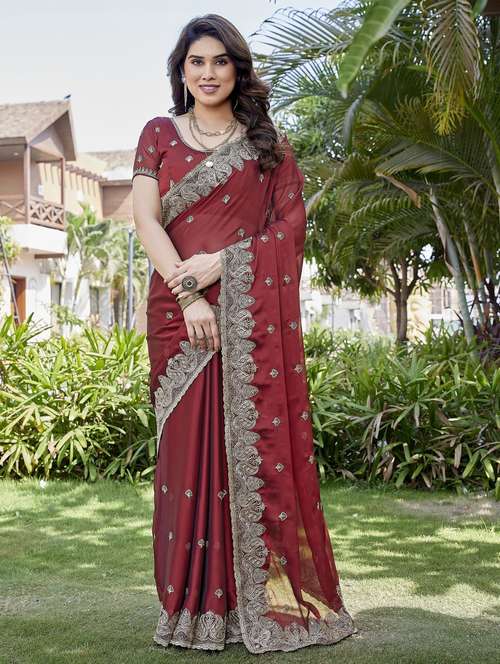 women solid with work embroidered saree with blouse